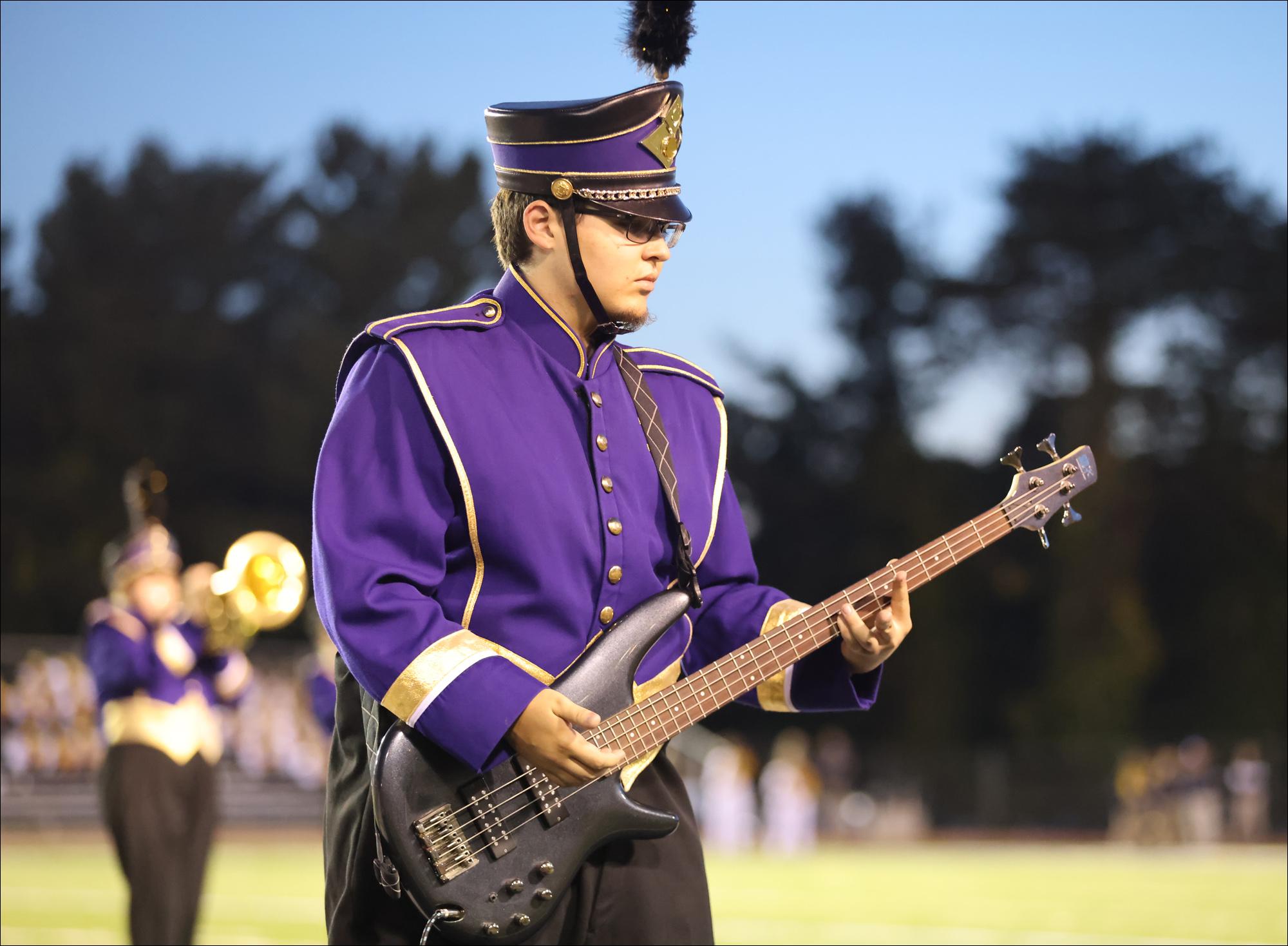 KARNS CITY - Karns City Area Jr. Sr. High School marching band bassist Austin Farone plays during one of their songs.