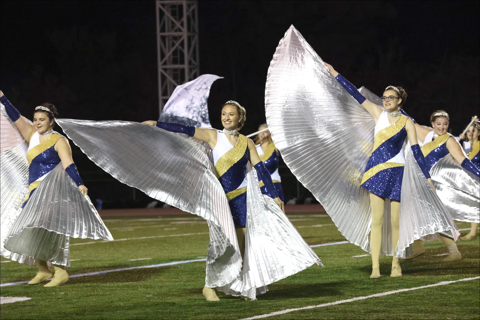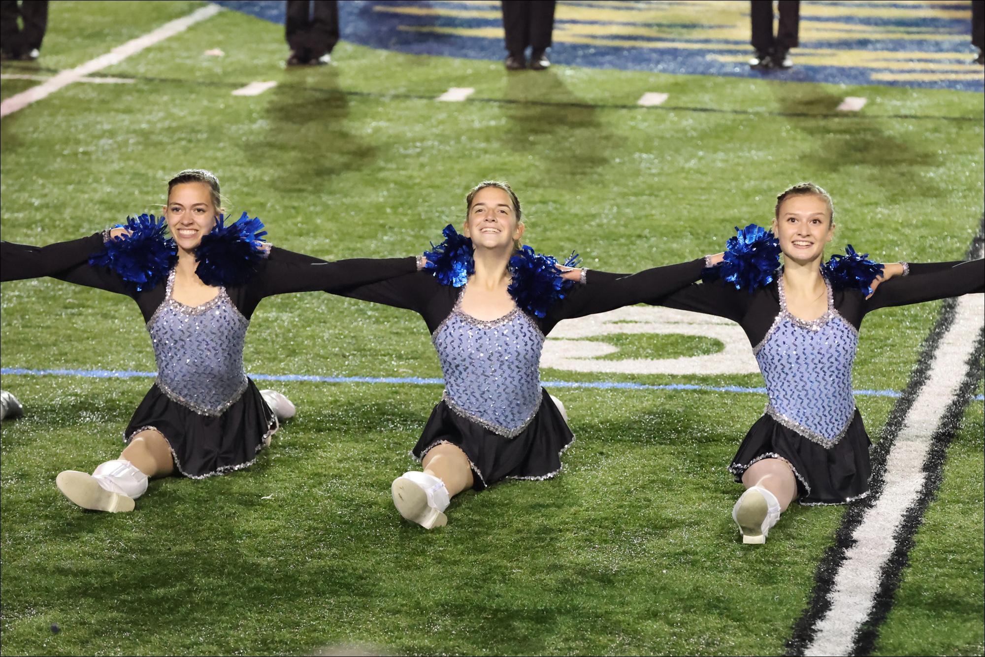 SENECA VALLEY - Seneca Valley dance team members finish a song with splits. The Raider band performed a medley of Believer, Any Way You Want It and Let’s Groove.