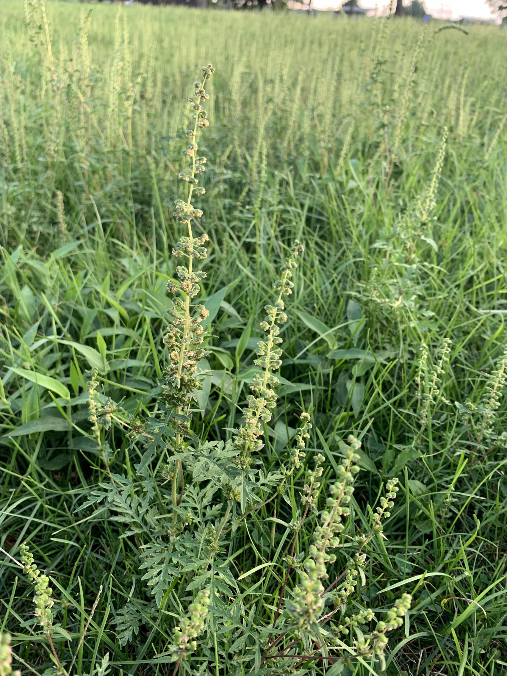 Ragweed's greenish, inconspicuous flowers have tiny pollen grains; ragweed depends on the wind for pollination. These pollen grains are inhaled into the lungs, causing allergic reactions. Both perennials grow in the same meadows, and fields bloom at about the same time.