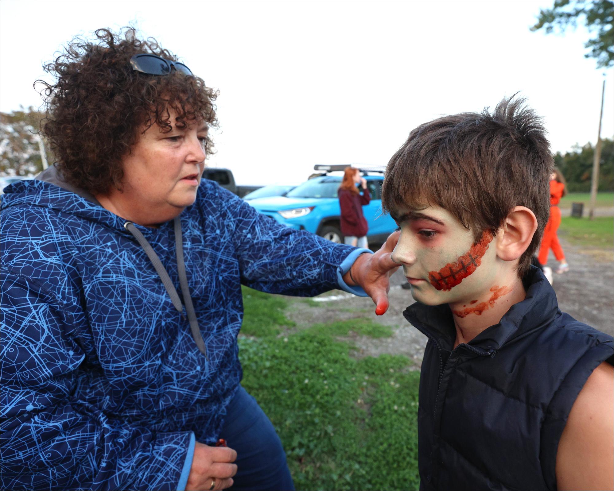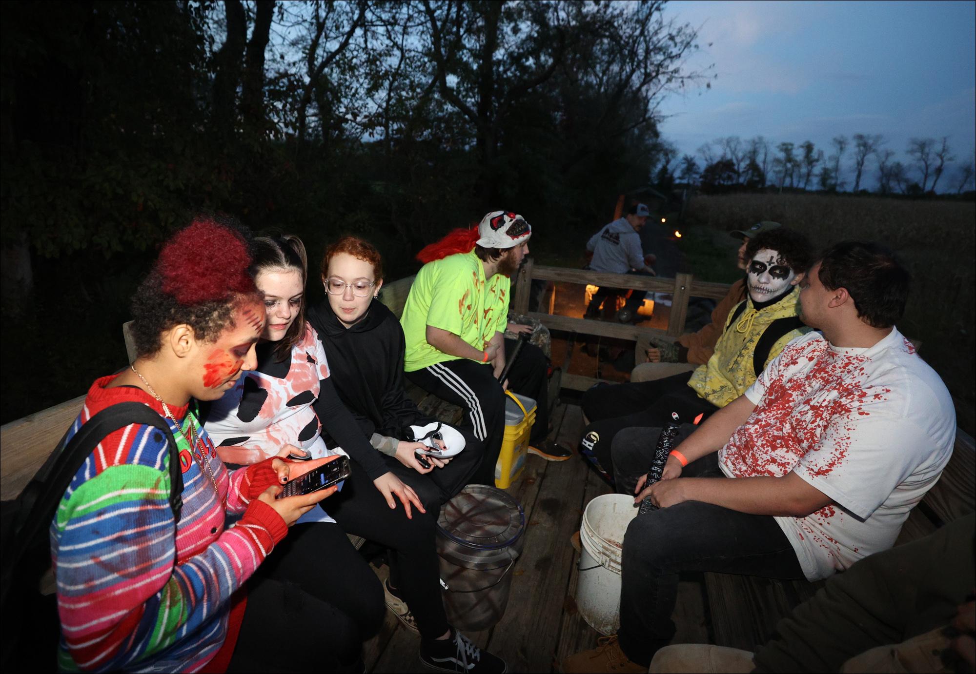 At Zombies of the Corn, actors prepare to scare with extensive special effects makeup routines. Their makeup artist of nine years, Alyssa Stamback, said she can spend up to half an hour on one actor's look, depending on its intricacy.